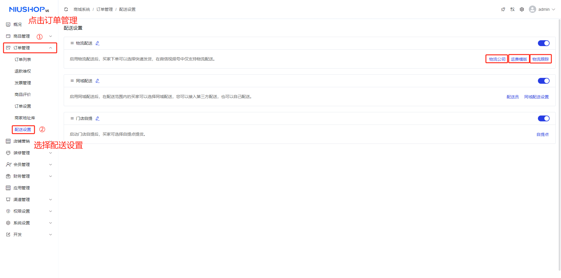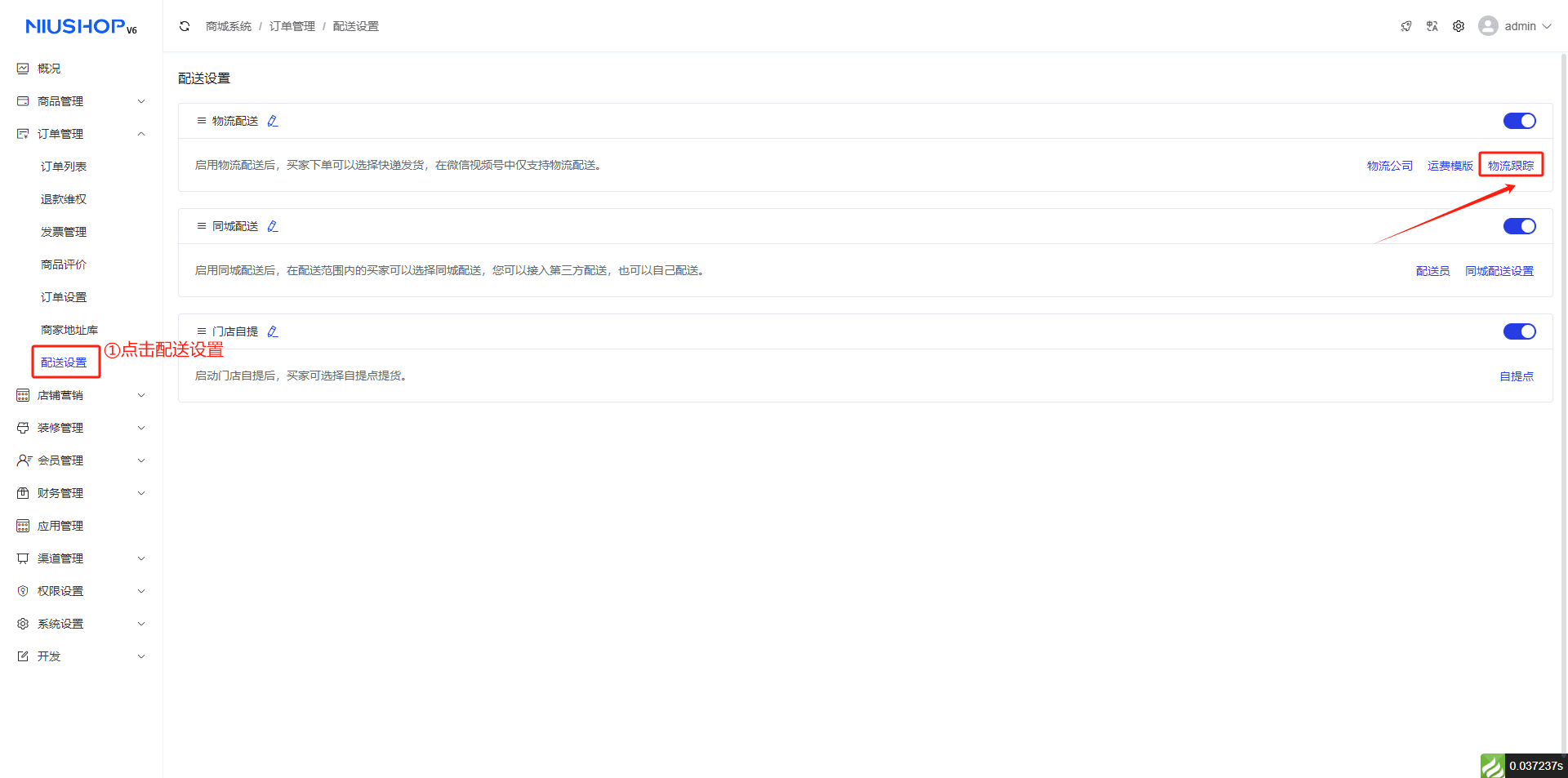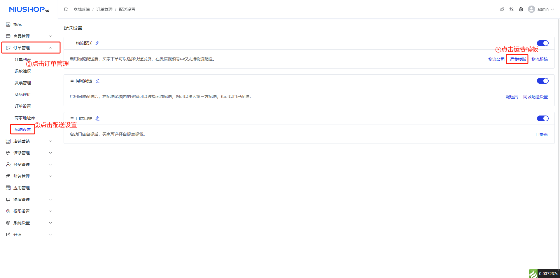 物流配送主要设置三个设置(物流公司、运费模板、物流跟踪)即可正常使用