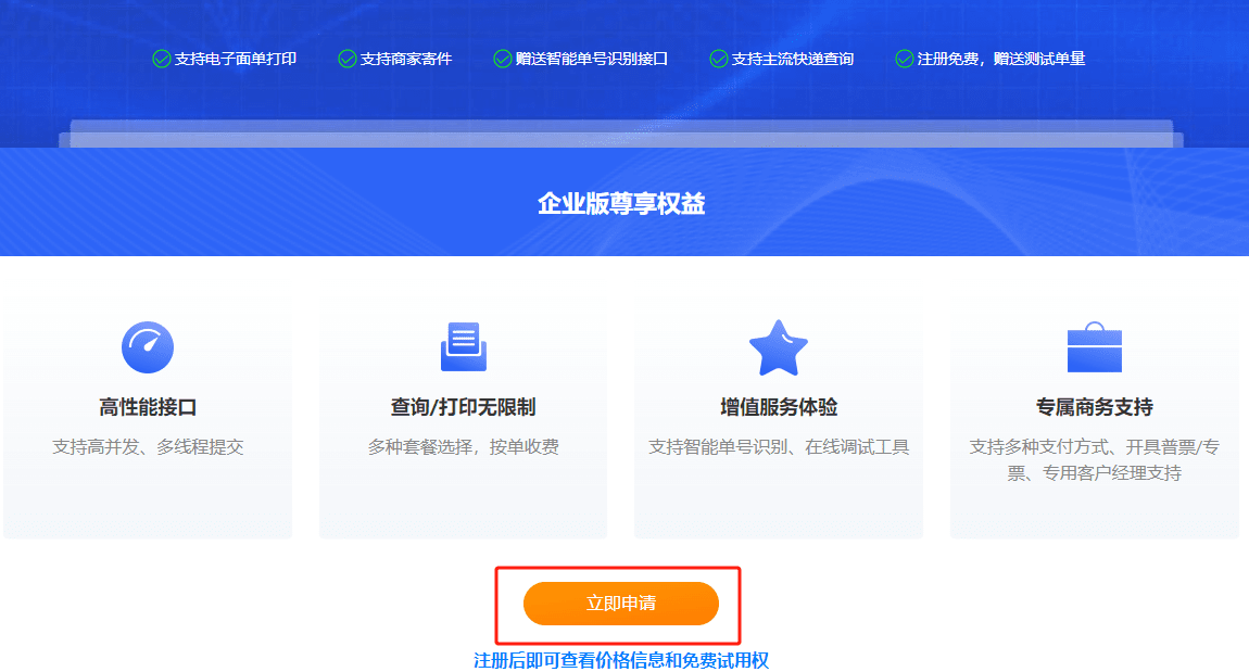 > *快递100(企业版本)*:只有接口功能,没有物流订单管理功能,适合通过企业自有系统进行物流信息管理的场景。