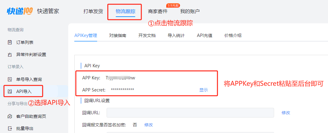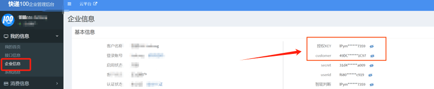 3.4申请通过后,进行登录,将APPKEY和APP Secret/CUSTOMER粘贴到后台