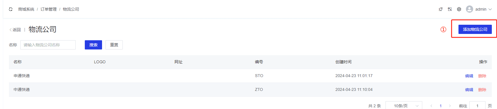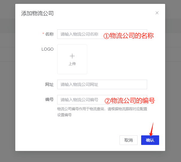 1.1物流公司名称和编号为必填项,填写完成后,单击确认
