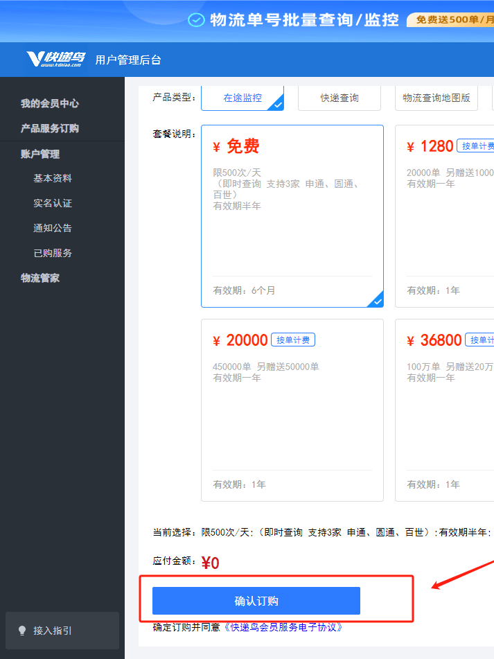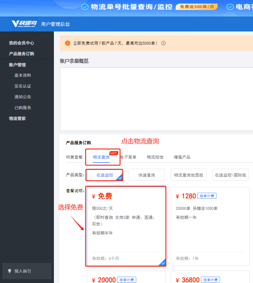 注册登录后,点击物流查询,选择在途监控,选择免费