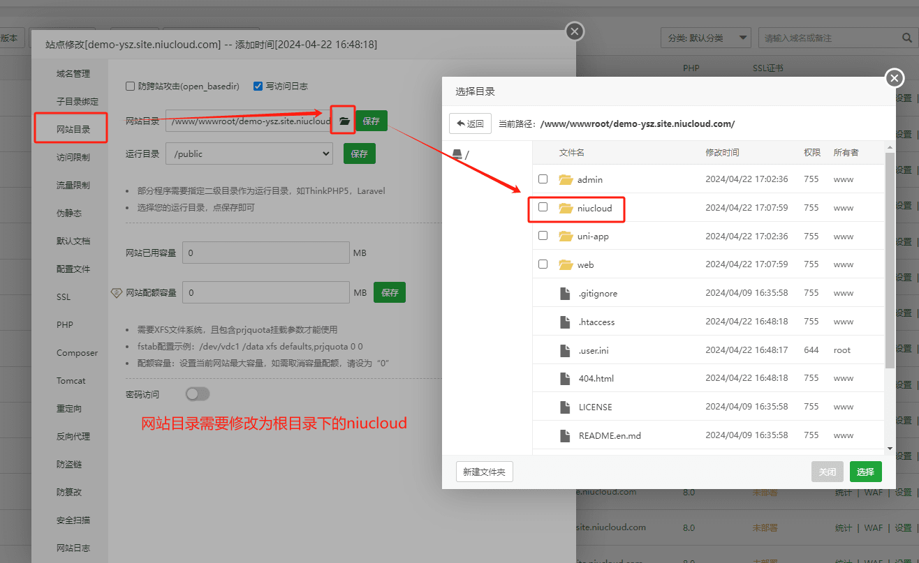 6.单击网站目录--取消勾选防跨站攻击(防止访问域名时候报错is_dir(open_basedir()) )