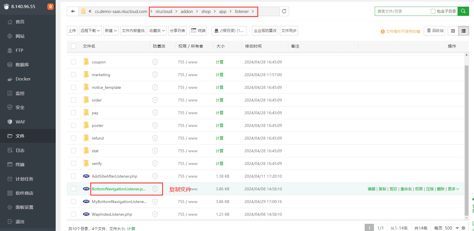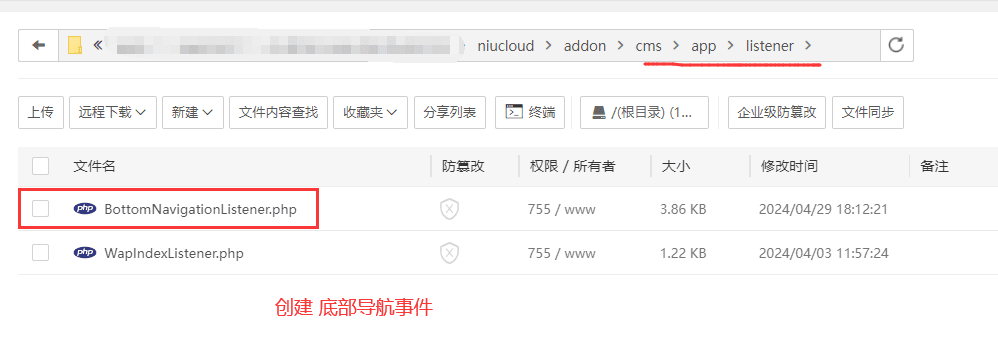 2.将导航事件文件粘贴至要开发的应用下(路径:niucloud/addon/cms/app/listener/粘贴文件)
