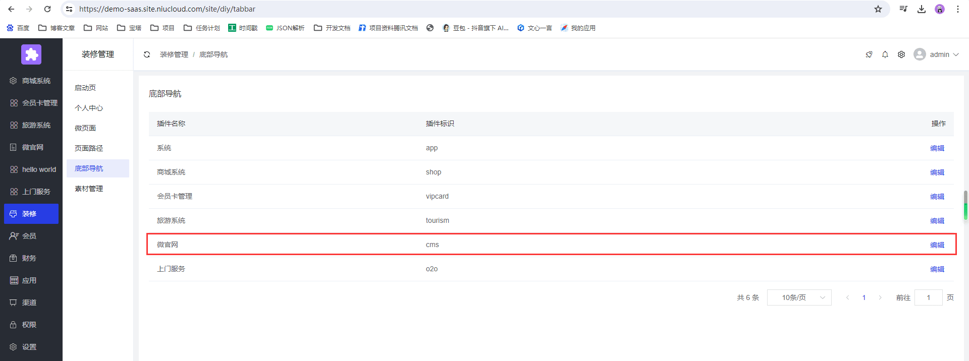 下面以创建微官网(cms)底部导航页面为例,讲述如何进行底部导航的二次开发