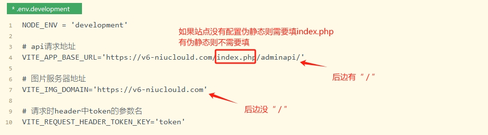 1.源码下载后,首先找到项目源码根目录下的admin文件夹,打开.env.development文件,填写配置,api请求地址和图片服务器地址。