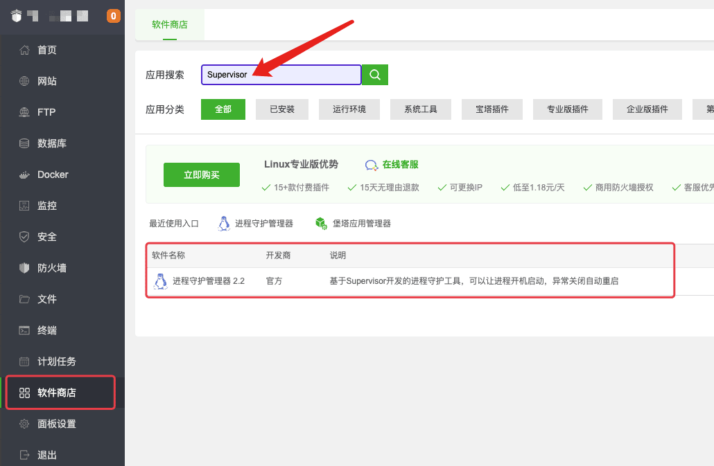 1. 宝塔软件商店搜索 Supervisor 并安装