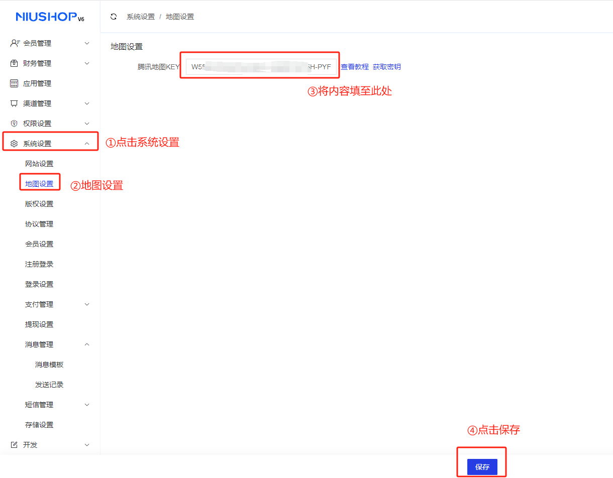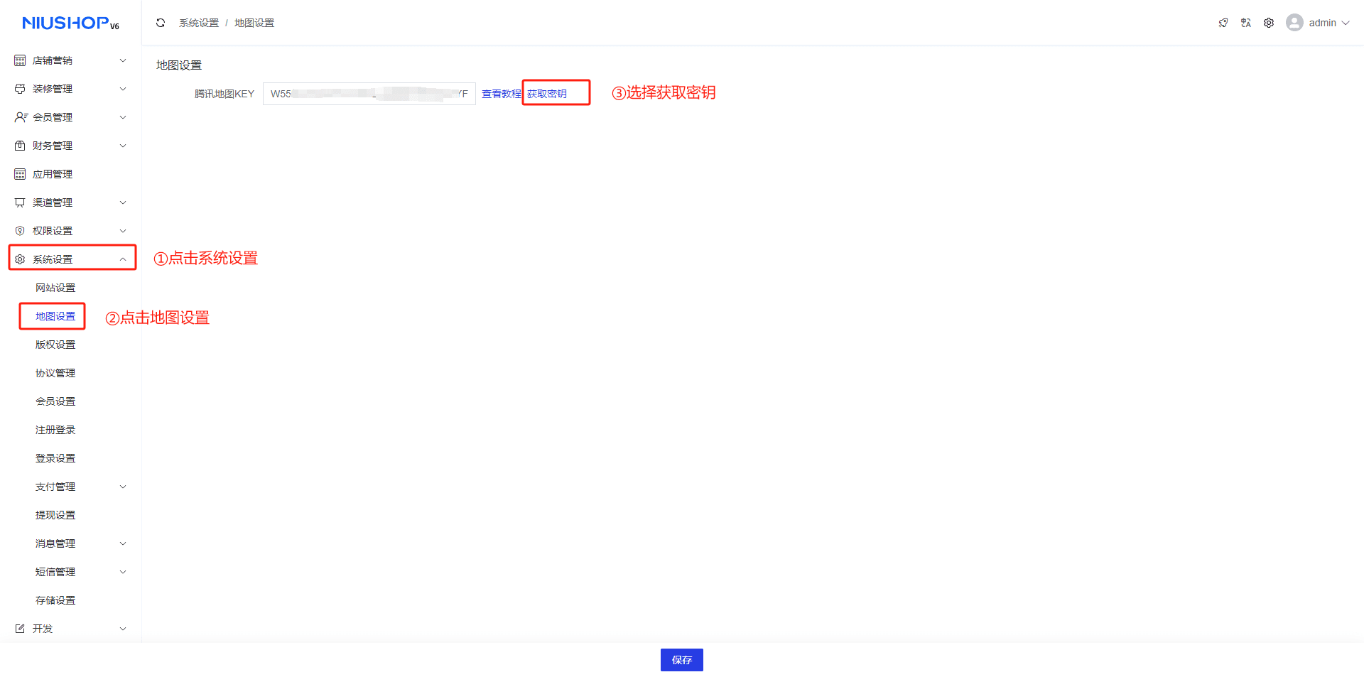 1.点开后台的地图配置,选择系统设置--地图设置--获取密钥