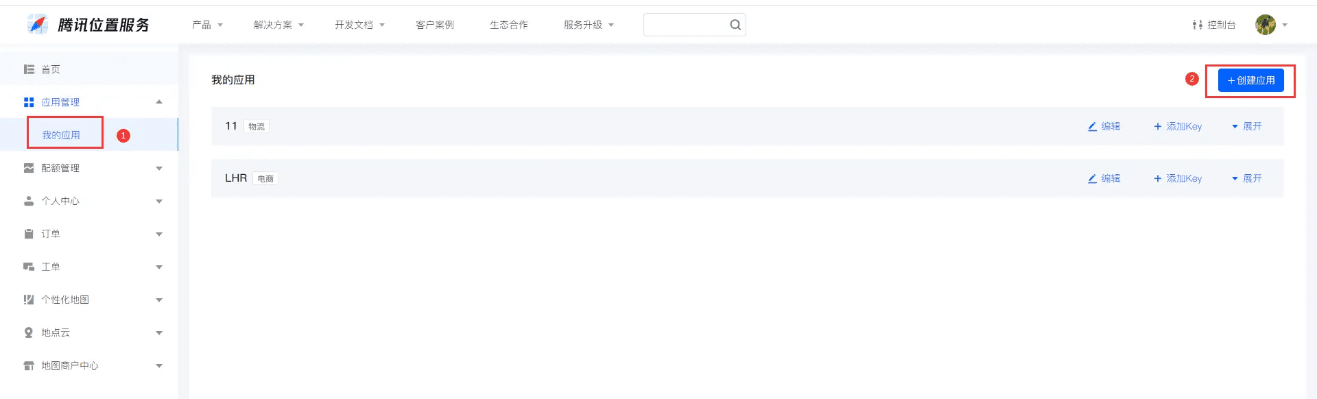 腾讯地图链接:https://lbs.qq.com/dev/console/application/mine