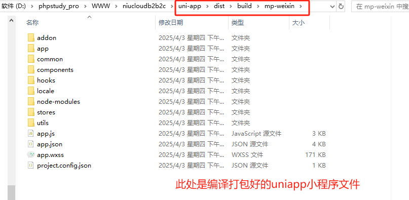 编译完成的uniapp会打包在uniapp/dist/bulid/mp-weixin目录下,可直接上传到线上,通过admin后台的小程序一键云上传上传即可