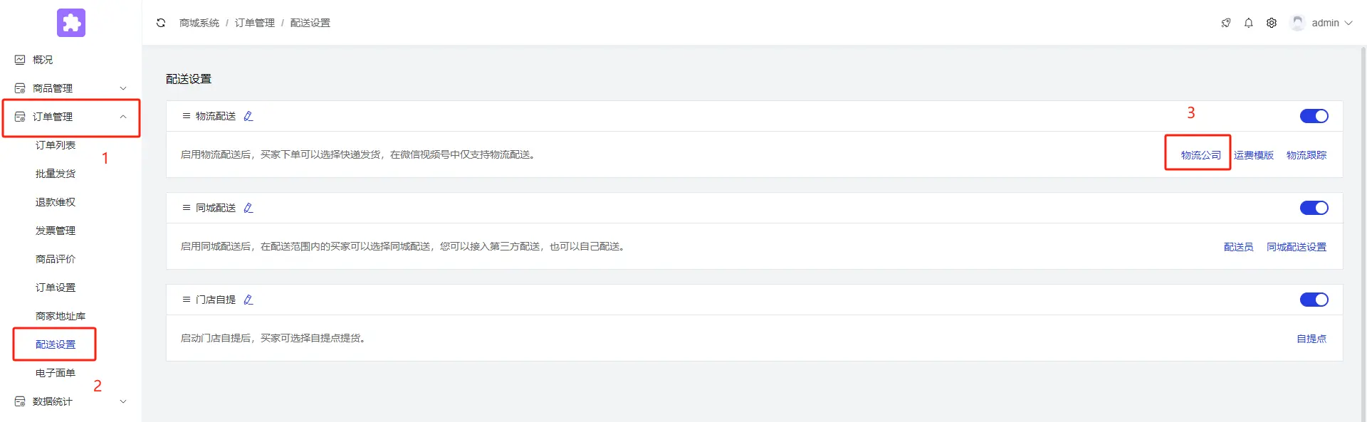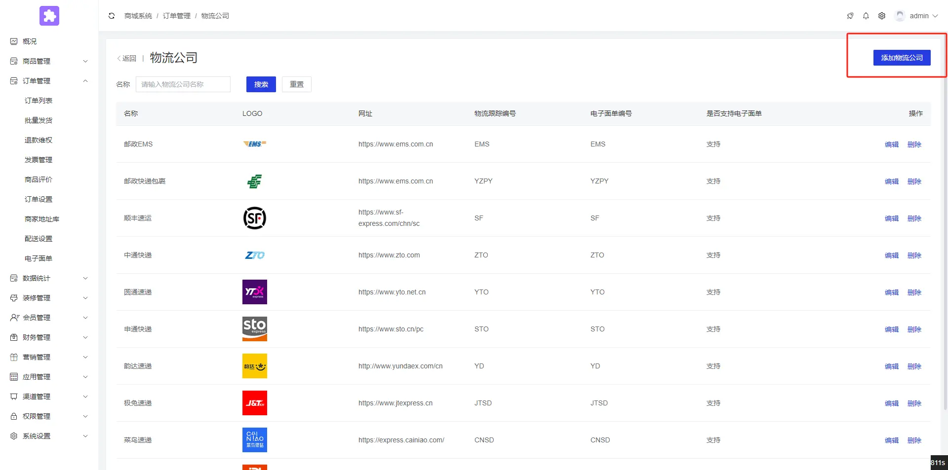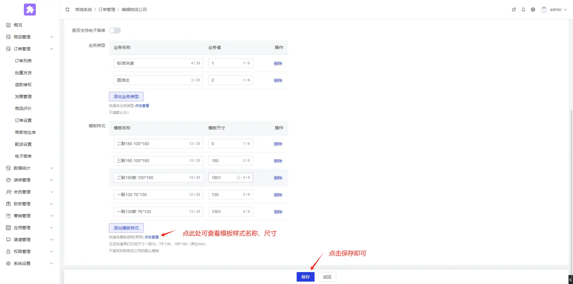 后台点击订单管理--电子面单--设置