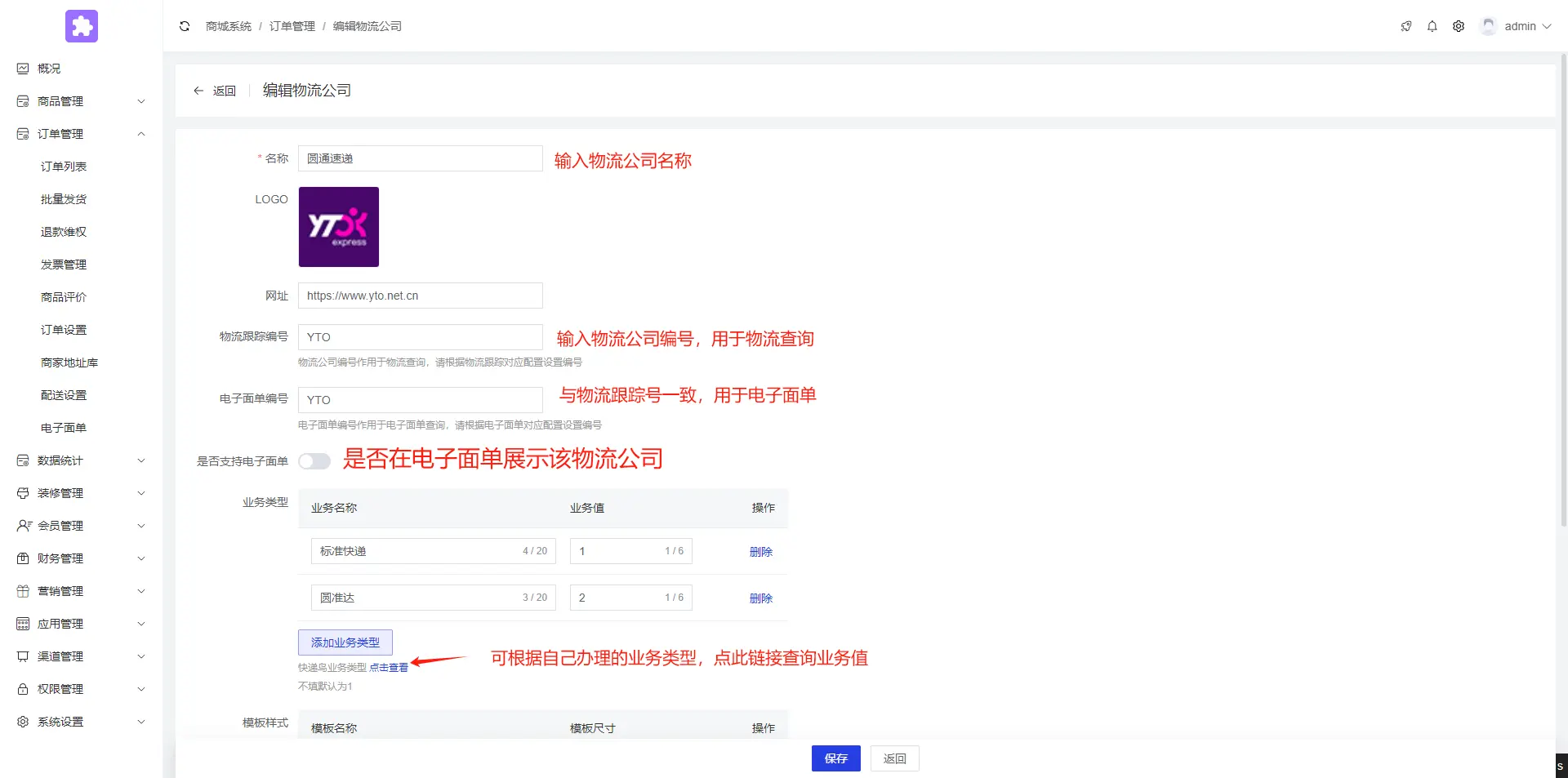 3.设置电子面单模板