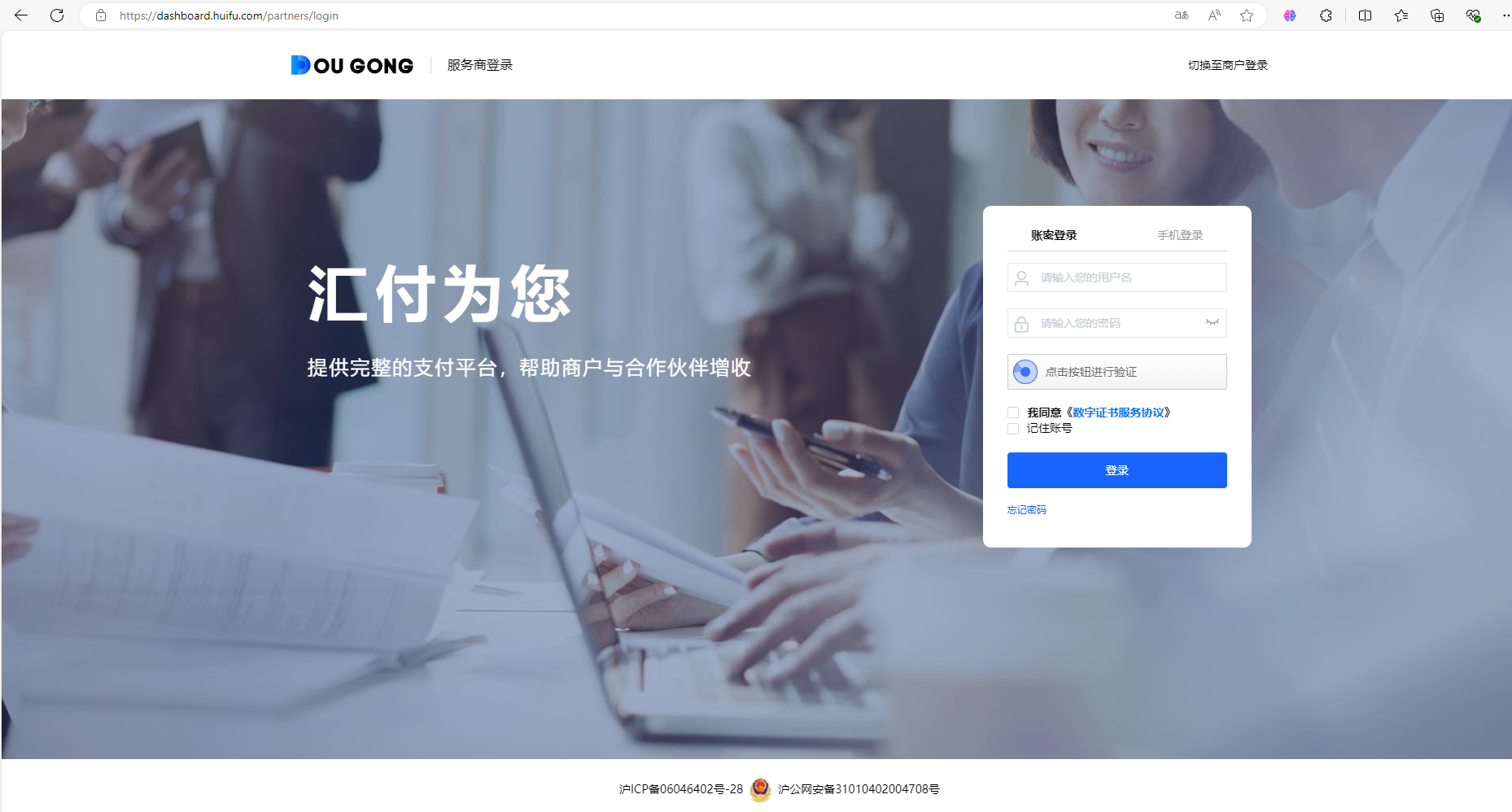 进入服务商登录后台:服务商平台-统一支付平台 (huifu.com)
