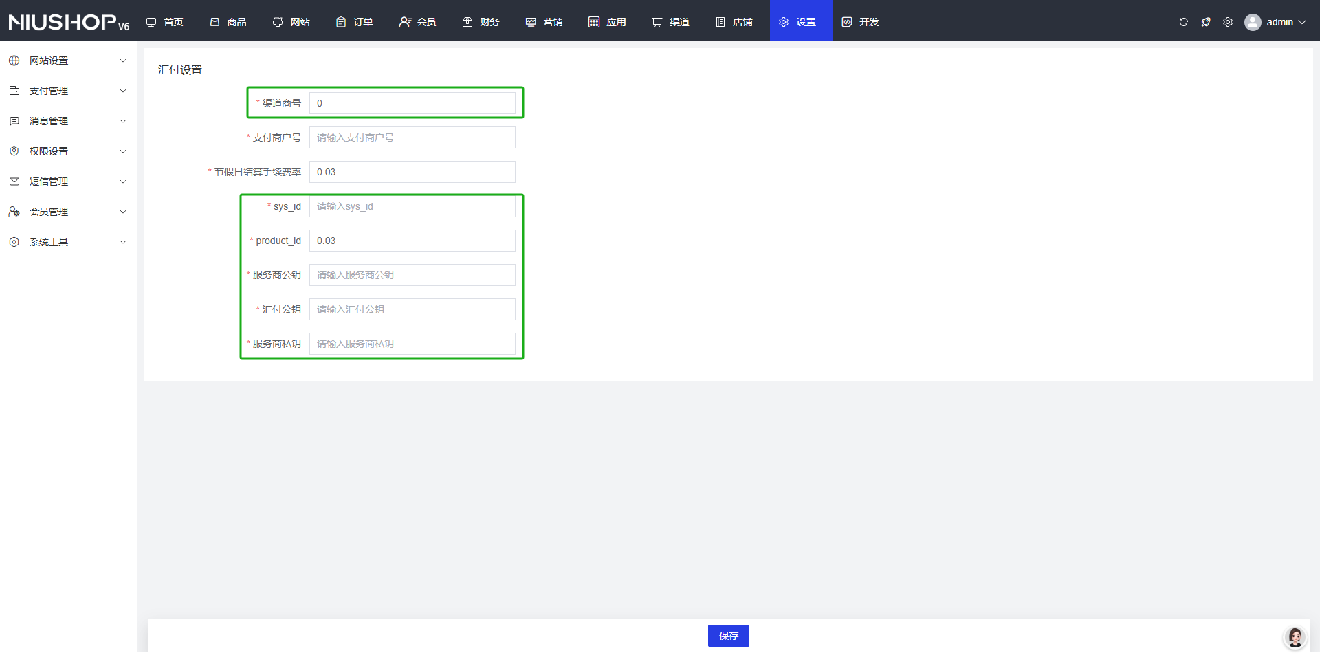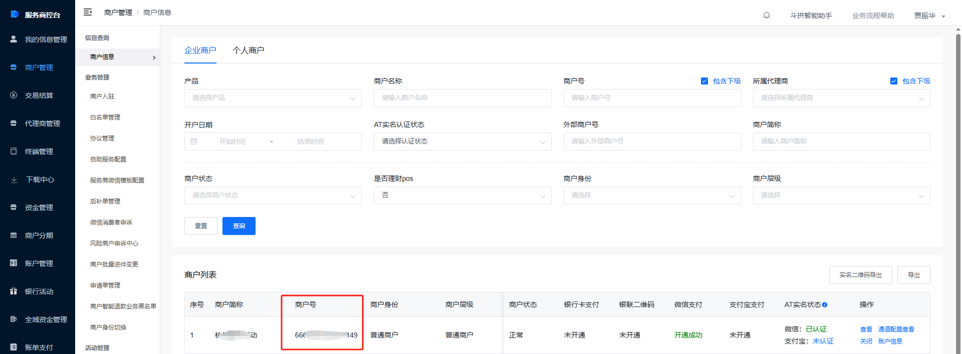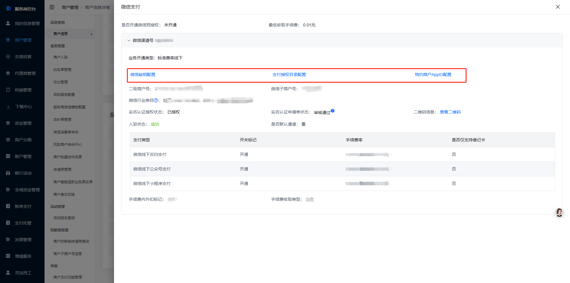 注意:节假日结算手续费率需要不可小于我的信息管理--服务商信息--微信扫码/支付宝扫码中的率底价