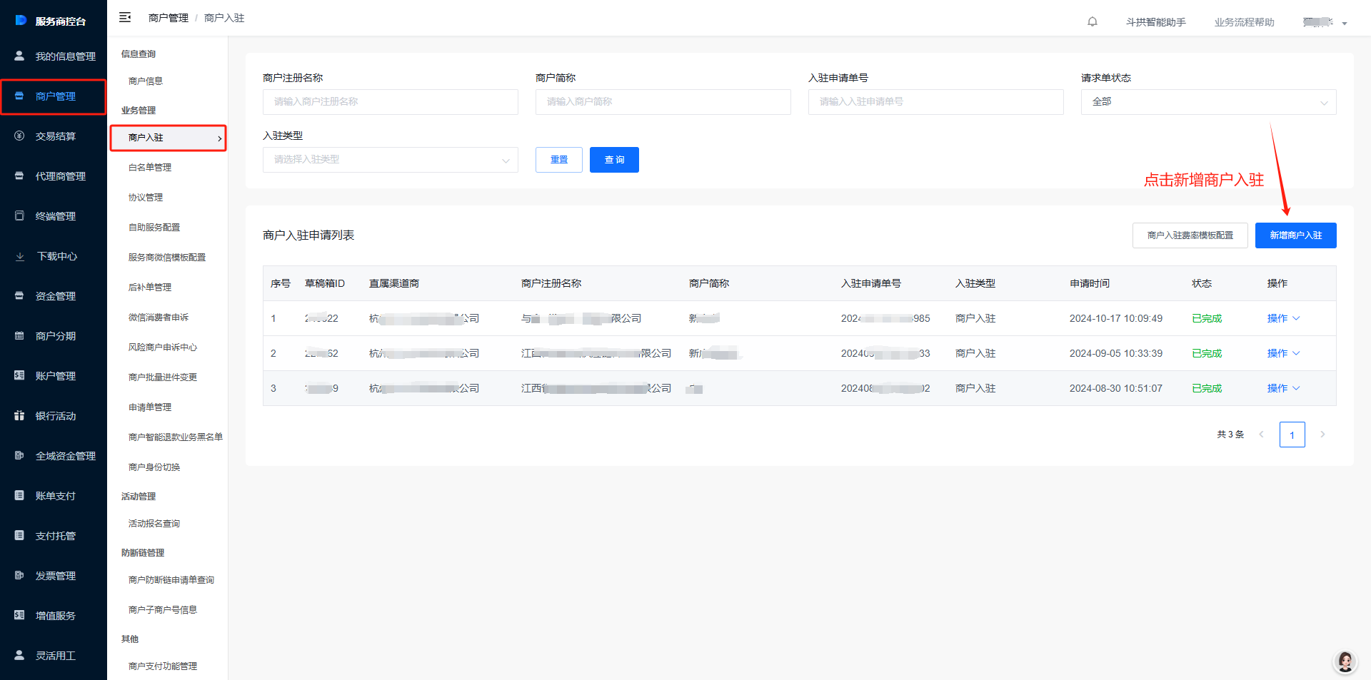 2.登录汇付账号后,商户管理--商户入驻--新增商户入驻